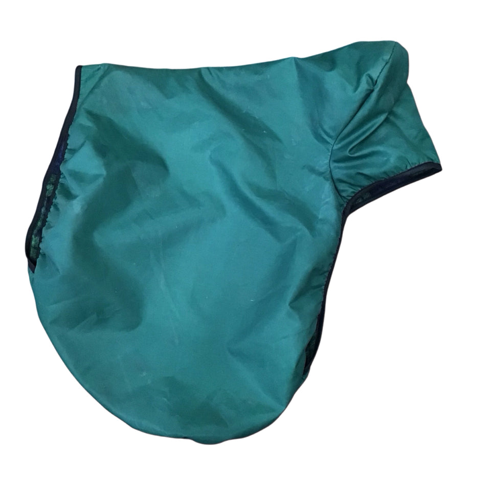 18" Devoucoux Makila Medium Used Dressage Saddle: Stamped 1661 10 18 2A PX5 PX425 PX310 PXLUZ (2010, forward flap) and is in good used condition with light wear for its age. Features dark green piping and includes a green cover